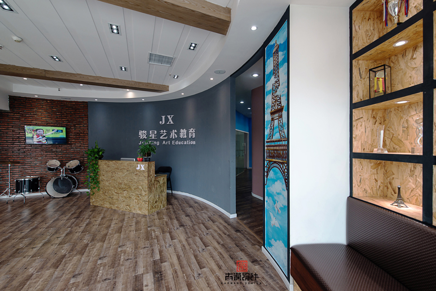《骏星教育》是一家专业的艺术培训机构,在南京本地享有一定声誉。这是《骏星教育》进驻江北市场的第一家分店,其重要性不言而喻。而商场划给我们的原始平面结构十分异形,非常不好用。BOSS谢总在自己反复研究如何利用面积多日无果又和多个设计师沟通不满意之后,最终选择了我们大漠设计。