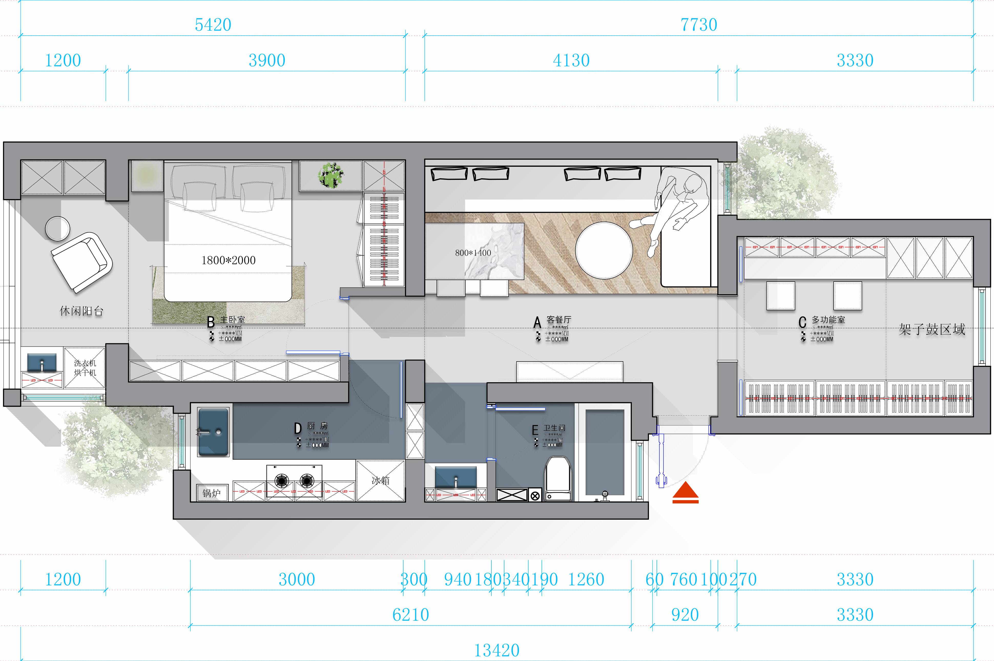 业主是两位90后小姐姐,特别的独立。平时的兴趣爱好广泛,游戏 架子鼓 滑雪...希望家里有足够多位置放她们的的这些设备,也想要很多放漂亮衣服的柜子。