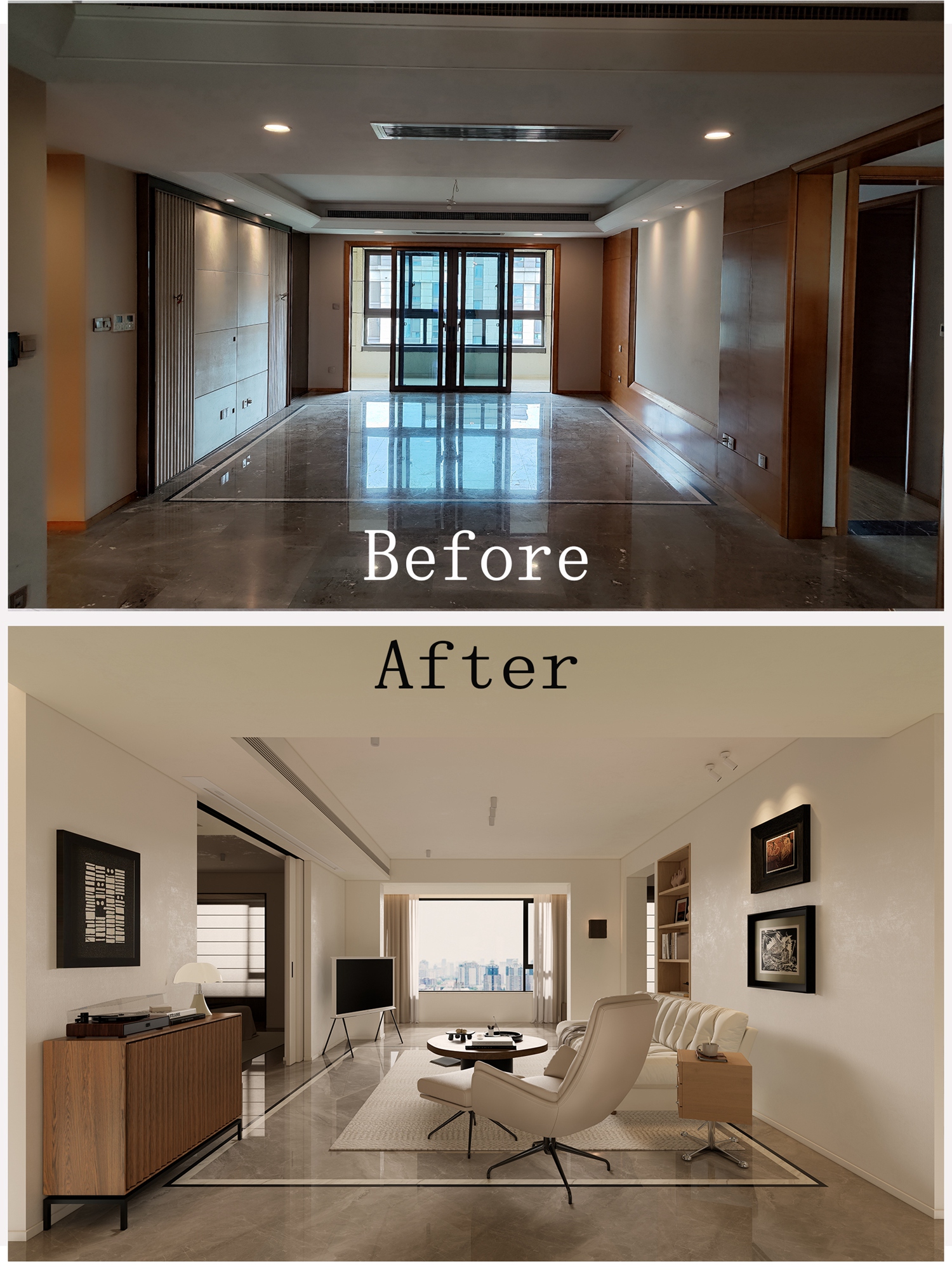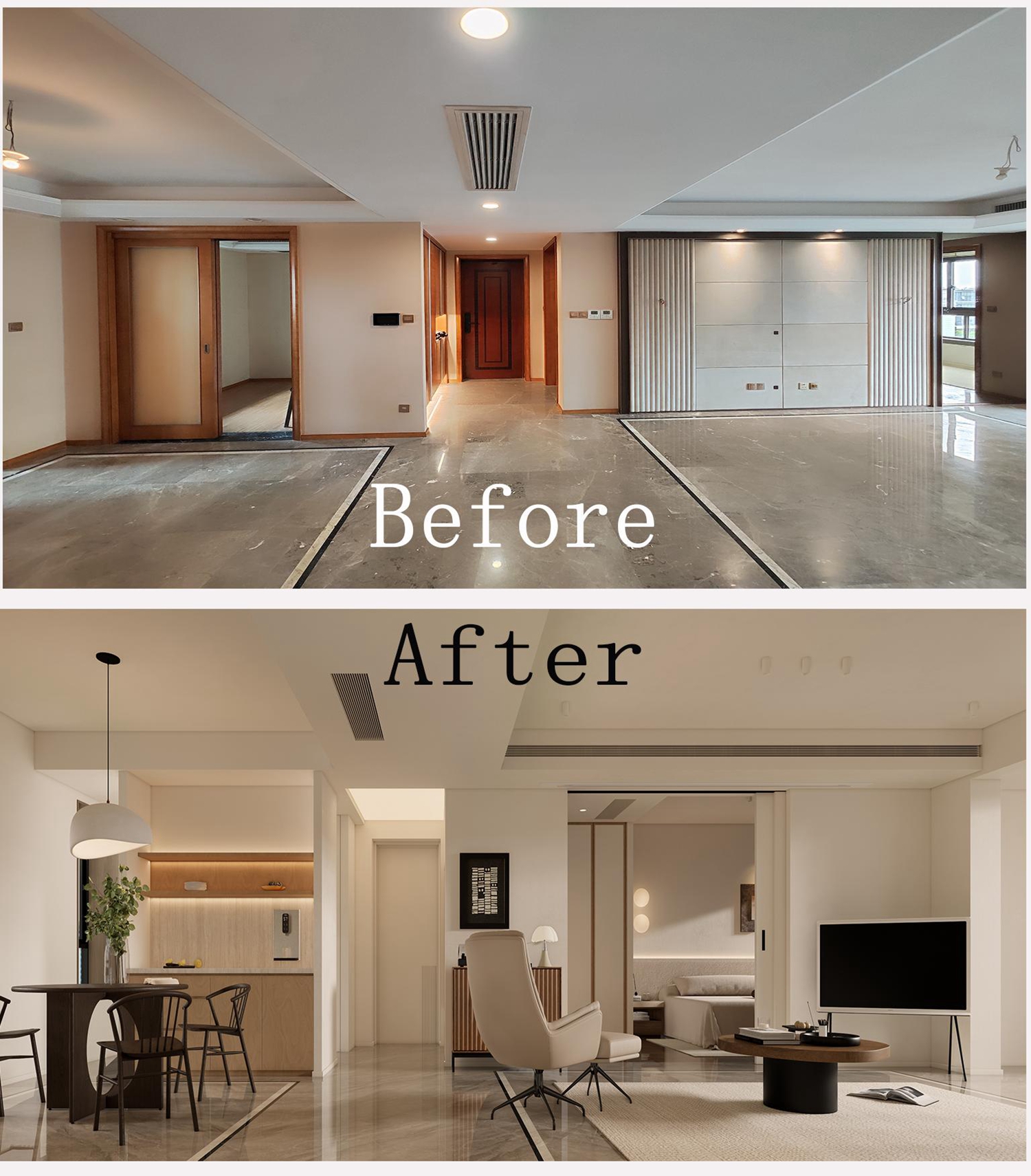 本案为一间精装改造的住宅,常住人口是两个人,偶尔会有客人来住 希望整体风格不要有太多刻意的装饰,要有松弛感,考虑地面地暖,地面石材不与拆改 布局这一块总体需要开放自由,也要有一定的私密性 最核心的就是要符合男女主人的生活习惯