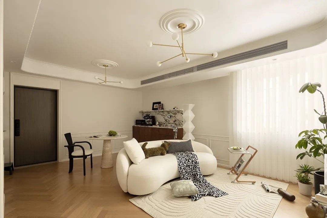 65平的低楼层住宅。我们以优雅浪漫的情调为画笔,勾勒出了法式复古、自然舒适空间,简约不简单的线条,结合柔软明亮的配色,简白通透,空间无压力,给家增加了温馨松弛的氛围感,希望给屋主打造个一进家门就能放松的家!