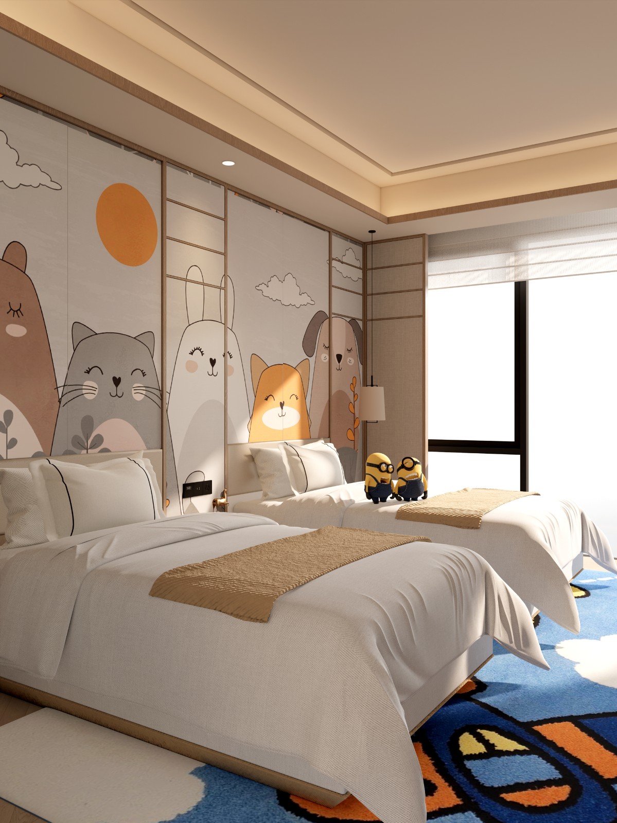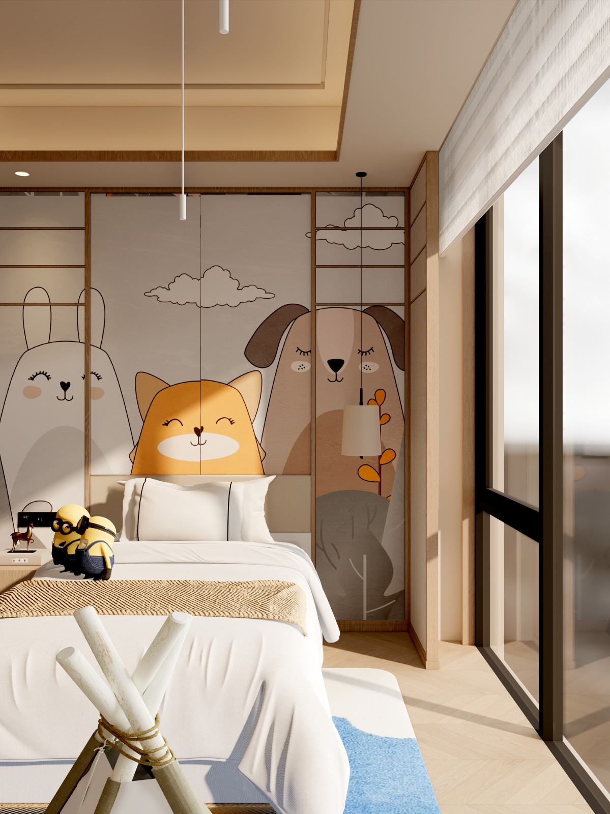 儿童区:卡通床头背景造型,小帐篷的有趣空间,使得童趣十足。