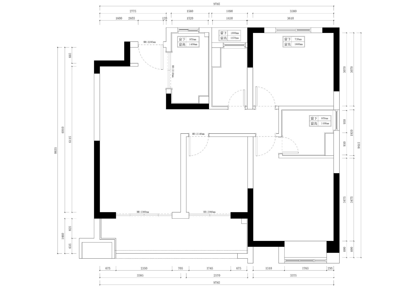 本户型算是一间标准的三房两卫的格局,乍一看格局还不错,因为总面积只有110多平米,分成这么多空间之后,就会存在各个空间的面积不足的问题,比如客厅纵深不够,厨房台面不足,主卧放在衣柜之后,再放个1.8米的床就会很拥挤了...我们的设计方案就是根据这几点调整的。 #户型图 #户型改造 #精装房改造#