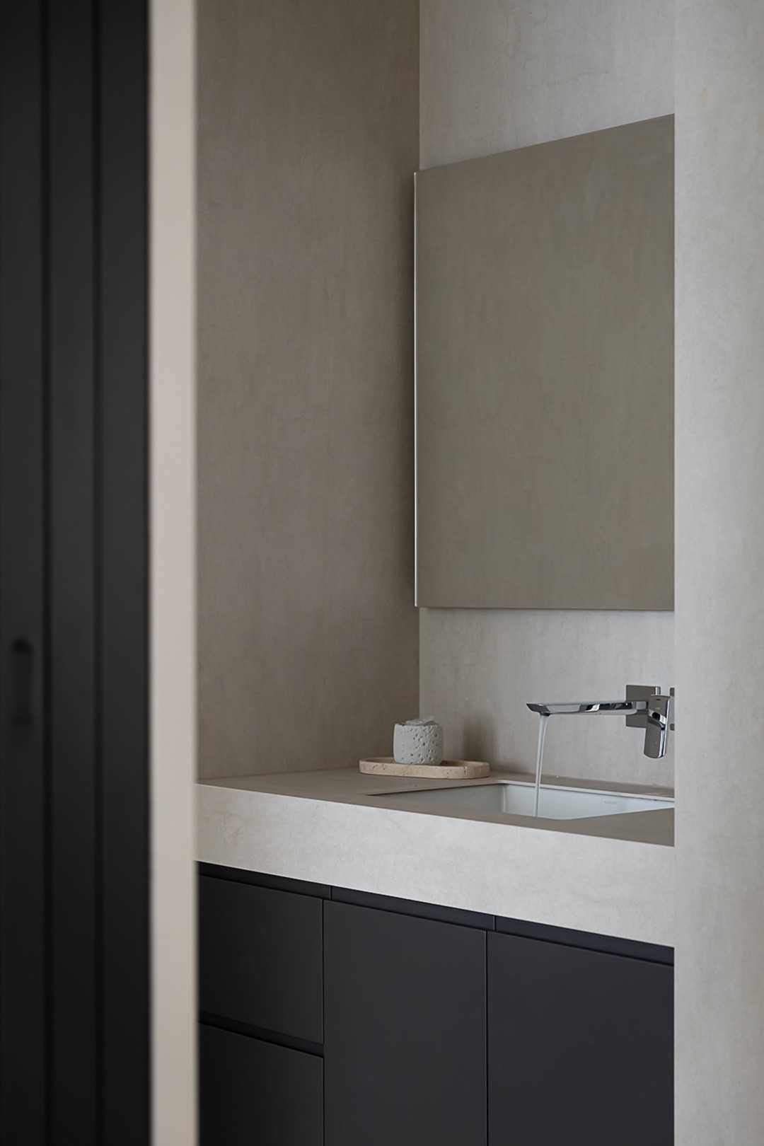 ▲主卧原本的格局中主卫的门对着床头并不理想,悬空柜在床和卫生间中间形成一道“影壁”,即隔开了卫生间,又让空间丰富而有趣。