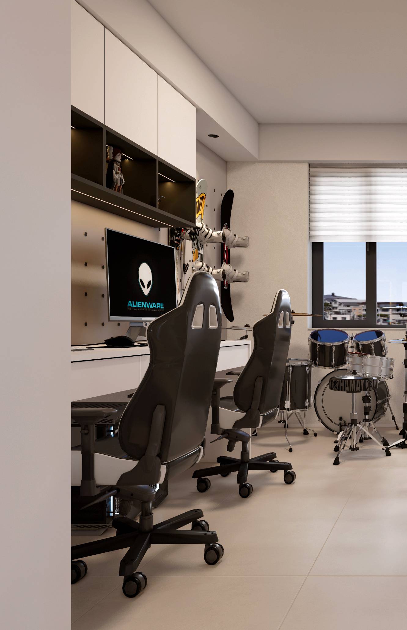 业主是两位90后小姐姐,特别的独立。平时的兴趣爱好广泛,游戏 架子鼓 滑雪...希望家里有足够多位置放她们的的这些设备,也想要很多放漂亮衣服的柜子。