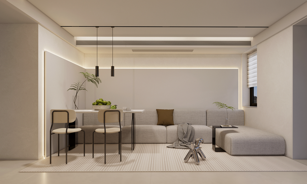原有的客厅空间不够,采用了定制沙发,形成了客餐厅一体格局。