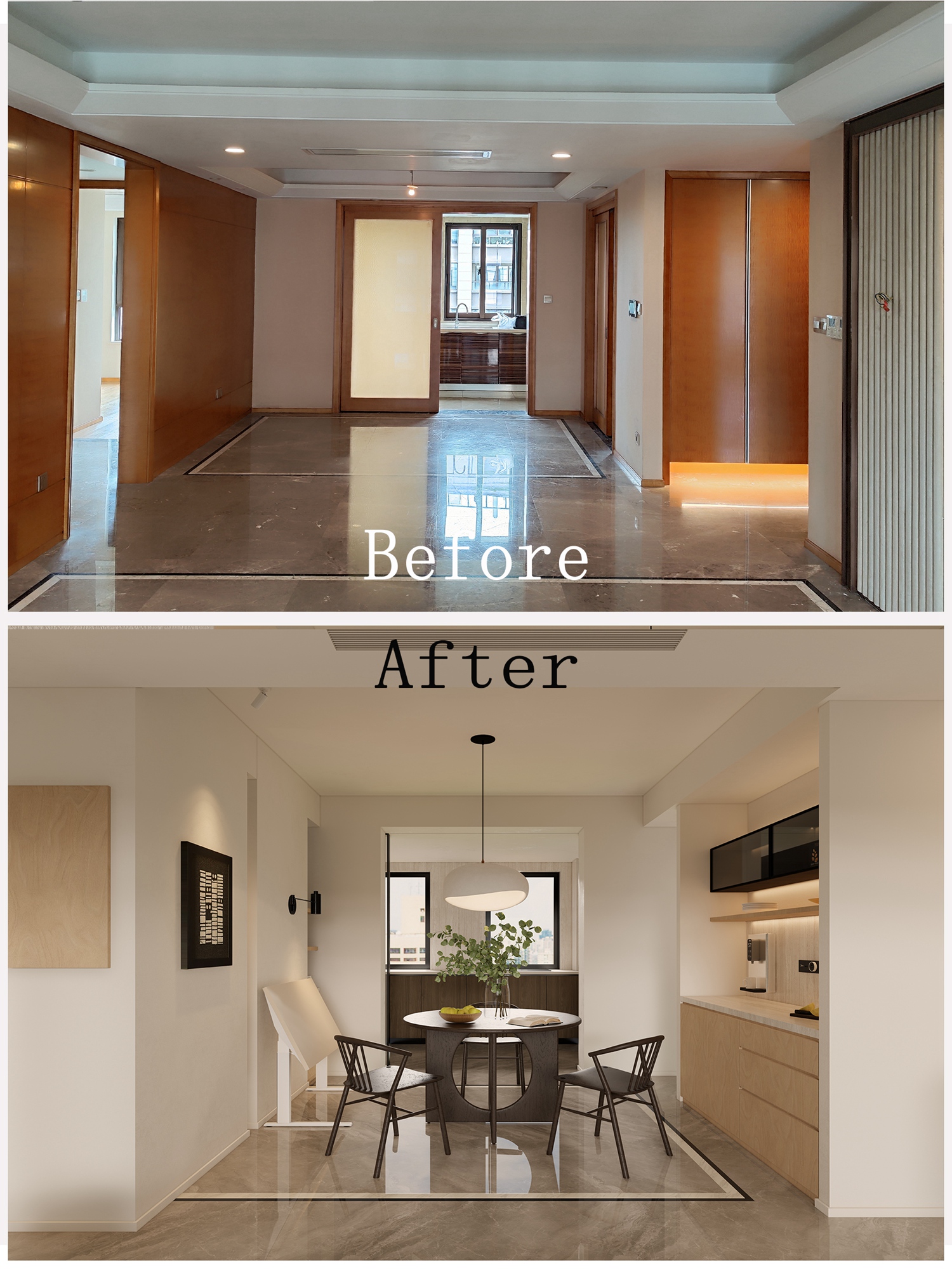 本案为一间精装改造的住宅,常住人口是两个人,偶尔会有客人来住 希望整体风格不要有太多刻意的装饰,要有松弛感,考虑地面地暖,地面石材不与拆改 布局这一块总体需要开放自由,也要有一定的私密性 最核心的就是要符合男女主人的生活习惯