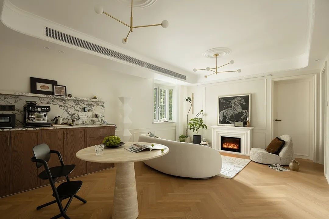 浅色的整体空间里,胡桃木色作为点缀色,在整体温柔的空间里,有了自然质感的味道,增添了份平和、静谧的气质。