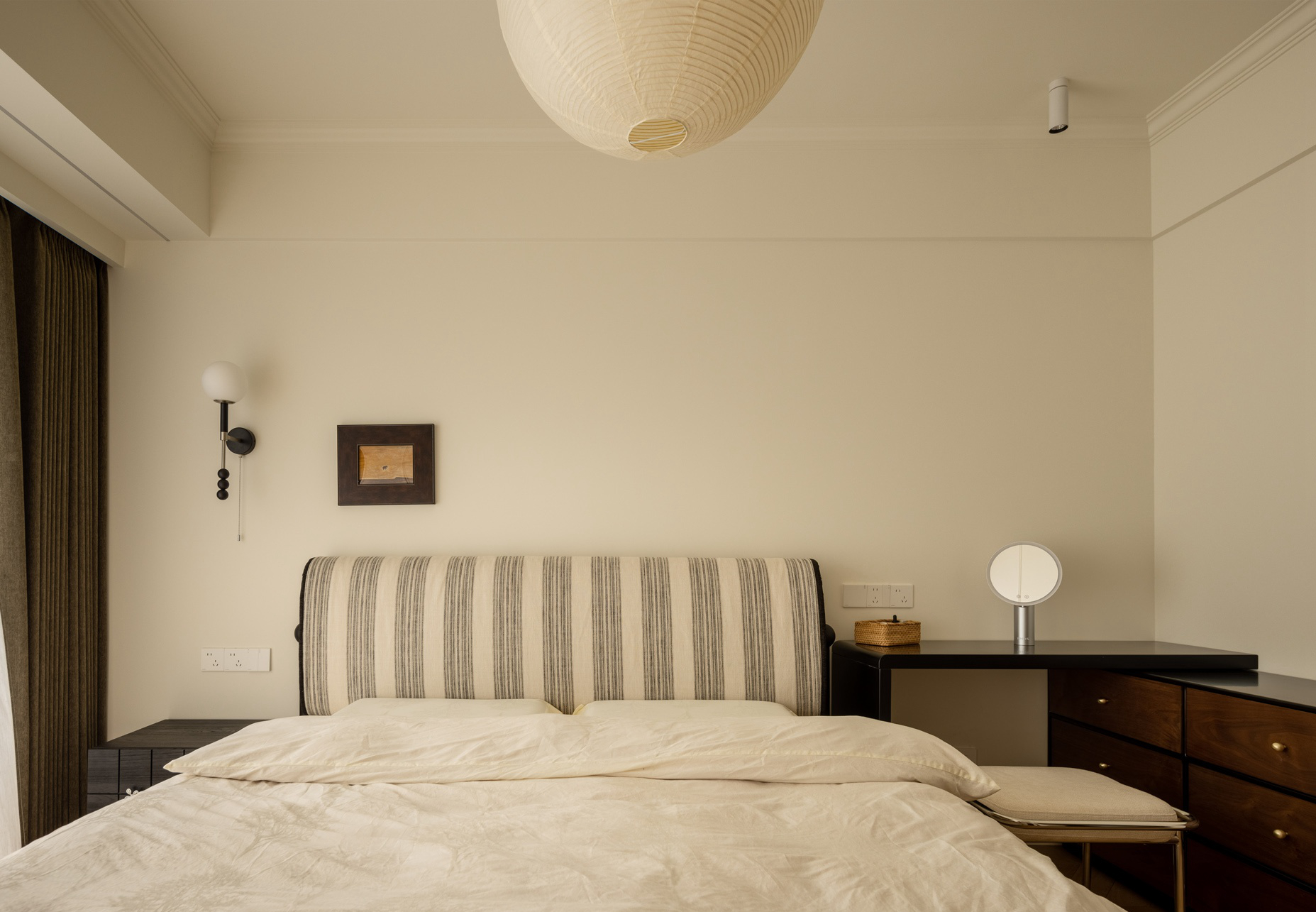 主卧延续了整体的中古风格,营造出静谧舒适的睡眠环境。