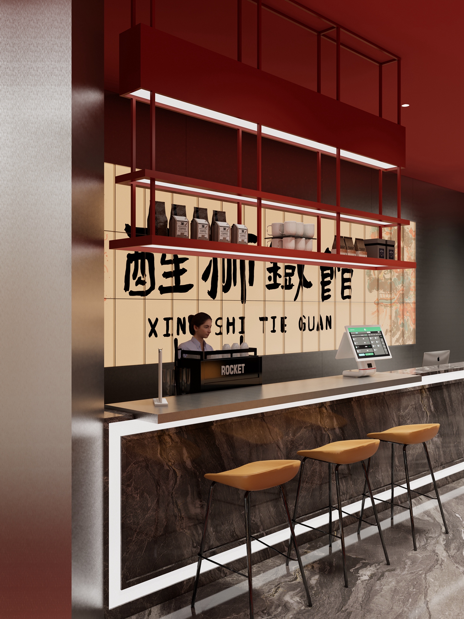 本案的主题为国潮中国风,红色天花与红色地胶相互呼应点名了主题。