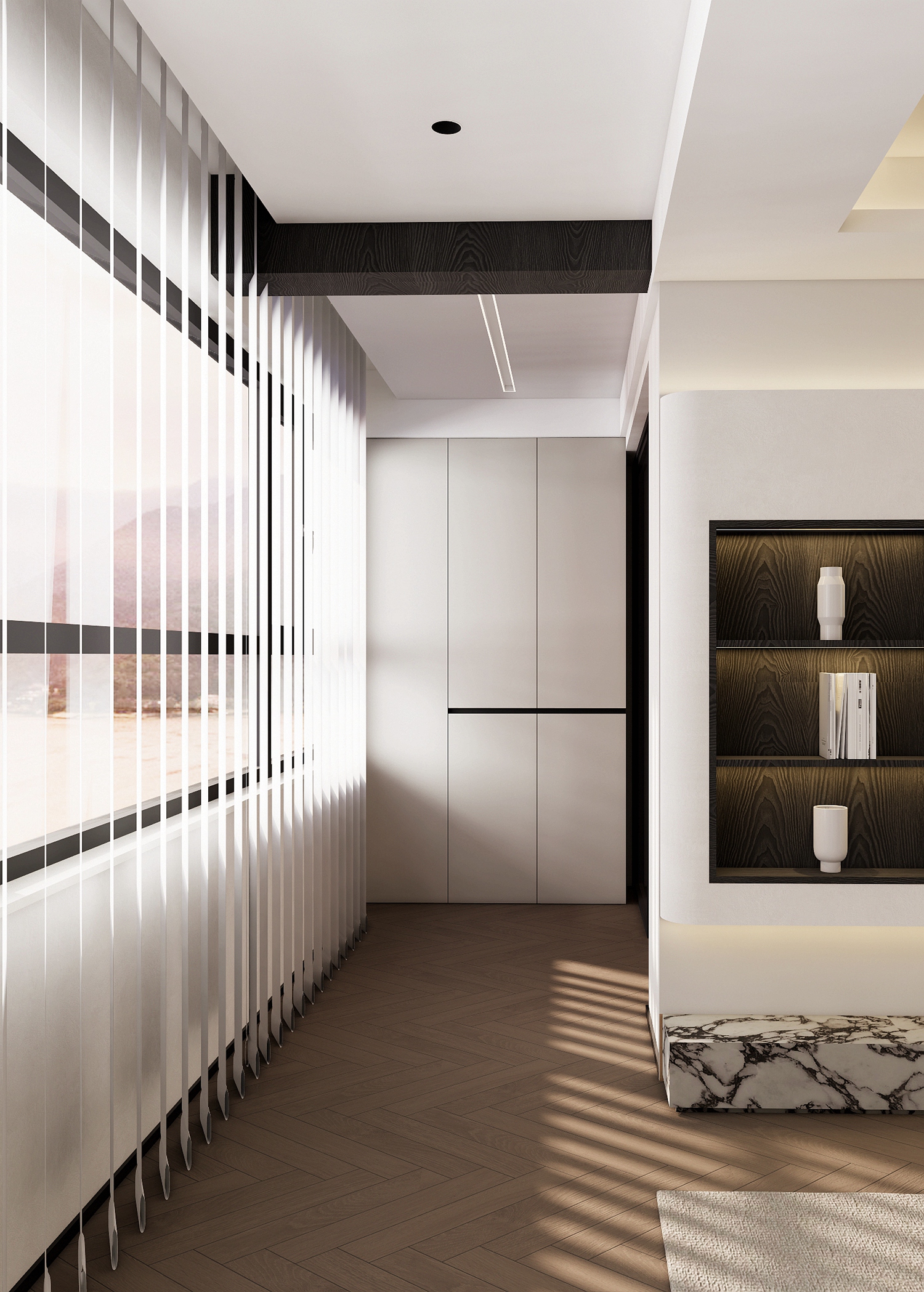 ▲阳台的主梁用黑色的木饰面装饰,强调结构的变化。